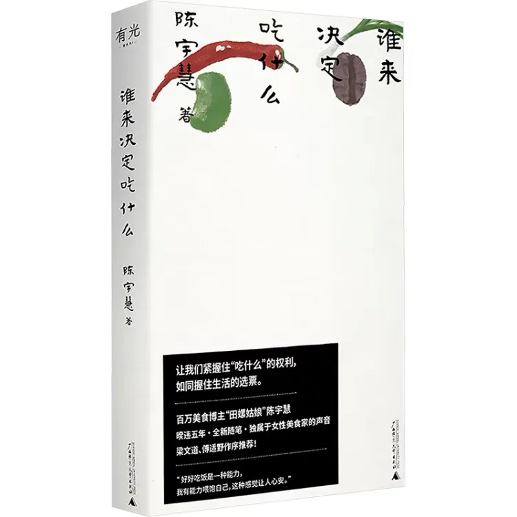 一本关于食物的随笔,田螺姑娘“陈宇慧”带你从“吃”这件可大可小的事,重新梳理生活的秩序。书中虽有详尽实用的做菜技巧,但更令人印象深刻的,是那些与食物紧密相连的家庭记忆和身份关系变迁。她将“妈妈的味道”比作让家人得以分辨彼此的家族徽章,将食物喻为乡愁——离家越远越具张力。