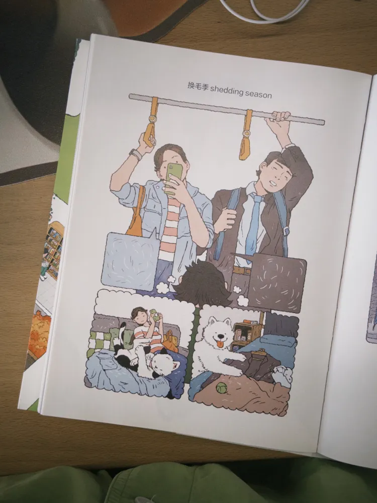 插画师天然继《生活蒙太奇》后的漫画绘本。正如书名,作者通过调整格子的排布方式,在纸上划分出不同空间,将具体的事物和无边的想象融合起来。比如《换毛季》中,她并置了“公车上沾满猫毛狗毛的乘客”和“宠物在家玩耍时将毛粘到衣服上”两个画面;《connect相连》里,她呈现出“月下共此时”的四种并列场景。