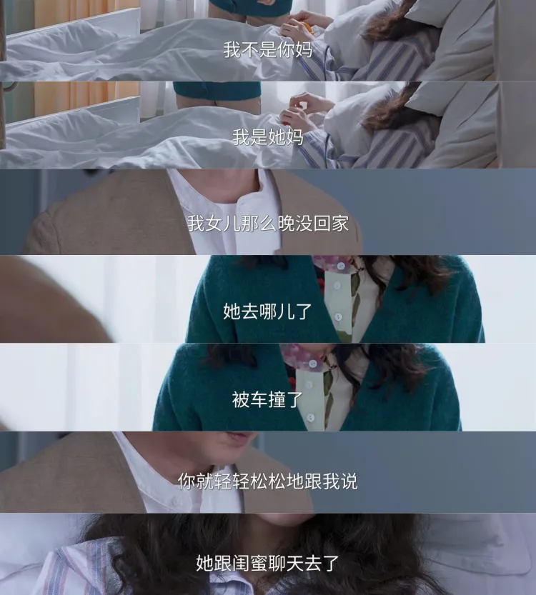 母亲或女儿,角色可以流动,个体可以分离,但共同的名字是女性。胡春蓉许可女儿活成自己的反面,祝福女儿以自己喜欢的方式拥有漂亮的人生。而许可在术前麻醉后的梦境中遇见年幼的胡春蓉,她对小女孩说:你不用认识我,去学习、去唱歌、去玩,去过你自己的人生。翻译一下,这何尝不是在说“我们彼此在乎”呢?