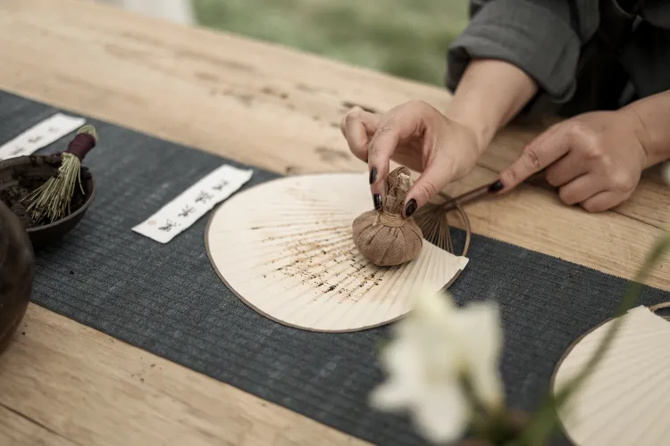 今年,在进入中国内地市场三年后,LE LABO迎来了它的二十岁。4月20日,LE LABO北京合院香氛实验室迎来重磅城市限定新香——樟木 25。与之相配,门前草坪上,举办了一场樟香茶道,以及以茶渍在团扇上作画的活动。
