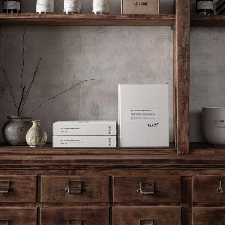 LE LABO在审美上有着清晰的坐标,那便是侘寂美学(Wabi-sabi)。Deborah Royer在多个采访中透露她对这一美学概念的青睐。《The Essence of Slow Perfumery》一书中也将它单独列为一个章节加以展开,可见它在品牌建设中的地位。