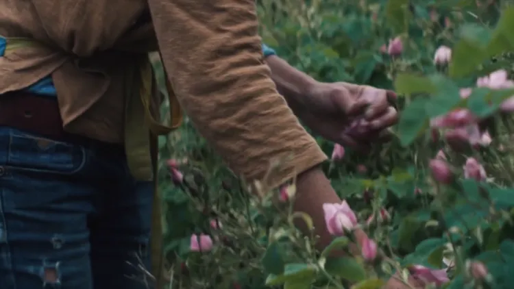 这个章节把视线投向“西澳大利亚被风吹拂的檀香林”“危地马拉的偏远高地”“阳光斑驳的普罗旺斯薰衣草田”……农人们穿梭于鲜柠檬成熟的林间,阳光从扁柏的枝叶间投下耀眼的光,粉艳的玫瑰花被采摘者装进腰间靛蓝的布袋,花叶上的露水可能已经沾湿了他们的裤腿……这些画面,完全脱离产品、柜台、店铺,甚至城市,没有任何品牌痕迹,但当中的土地、风、天空、海水和人,每一帧都在娓娓诉说这个品牌的精神和故事。